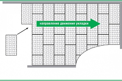 Объемные полотна георешетки укладываются в ряд или в шахматном порядке, при необходимости покрыть большую площадь основания полотна соединяются между собой специальными замками. После укладки ячейки георешеток заполняются плодородной почвой, в которую затем высаживаются семена газонной травы. Политая и уплотненная почва с высаженной травой должна равняться по верхнему краю решетки.Эксплуатация готовой поверхности допускается сразу после завершения работ в случае использования дерна или после прорастания травы при использовании почвы. Прорастающий газон нуждается в регулярном поливе и уходе – специальные почвенные добавки сделают газон более пышным и опрятным.